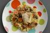 Dans un saladier, mélangez bien tous les ingrédients sauf les fruits secs.